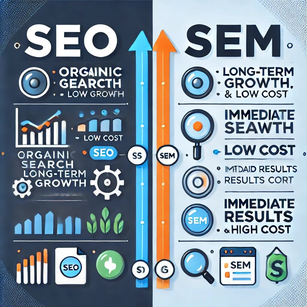 In today’s digital world, having an online presence is essential for businesses, organizations, and individuals. Millions of websites compete for attention on search engines such as Google, Bing, and Yahoo. To stand out in this competitive environment, digital marketing strategies are used to improve visibility and attract users. Among these strategies, Search Engine Optimization (SEO) and Search Engine Marketing (SEM) play a crucial role. Although both SEO and SEM aim to increase website traffic and visibility on search engine results pages, they differ significantly in terms of approach, cost, time frame, and overall strategy. Understanding these differences helps businesses make informed decisions and build effective online marketing plans.